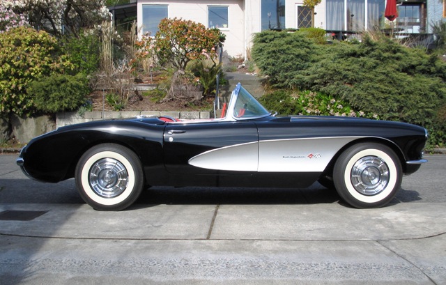 The 1957 Corvette included a larger V-8 and, as a mid-year addition to the options list, a four-speed manual gearbox that had long been demanded by enthusiasts. The Corvette's appearance didn't change -- not that it needed to -- except that the bodyside "coves" could now be finished in a contrasting color as a $19.40 option.