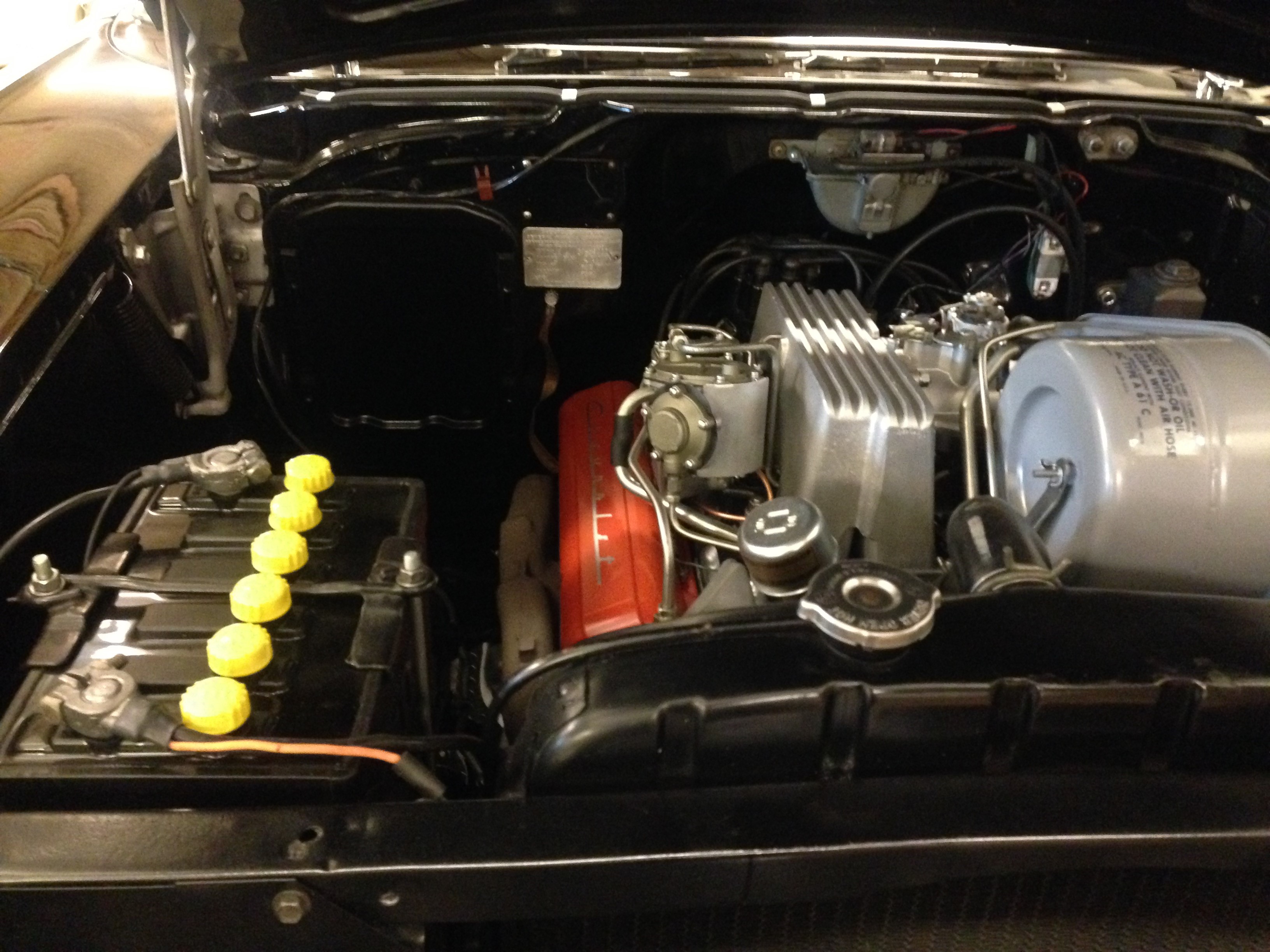 My ’57 is a 2 – door post car 150 series and black in color. It was probably a drag race car in its day as it has a 283/283 Fuel Injection system, 3 speed close ratio and many deleted items like back seat, radio, heater, clock, etc. It is all original and very well preserved.